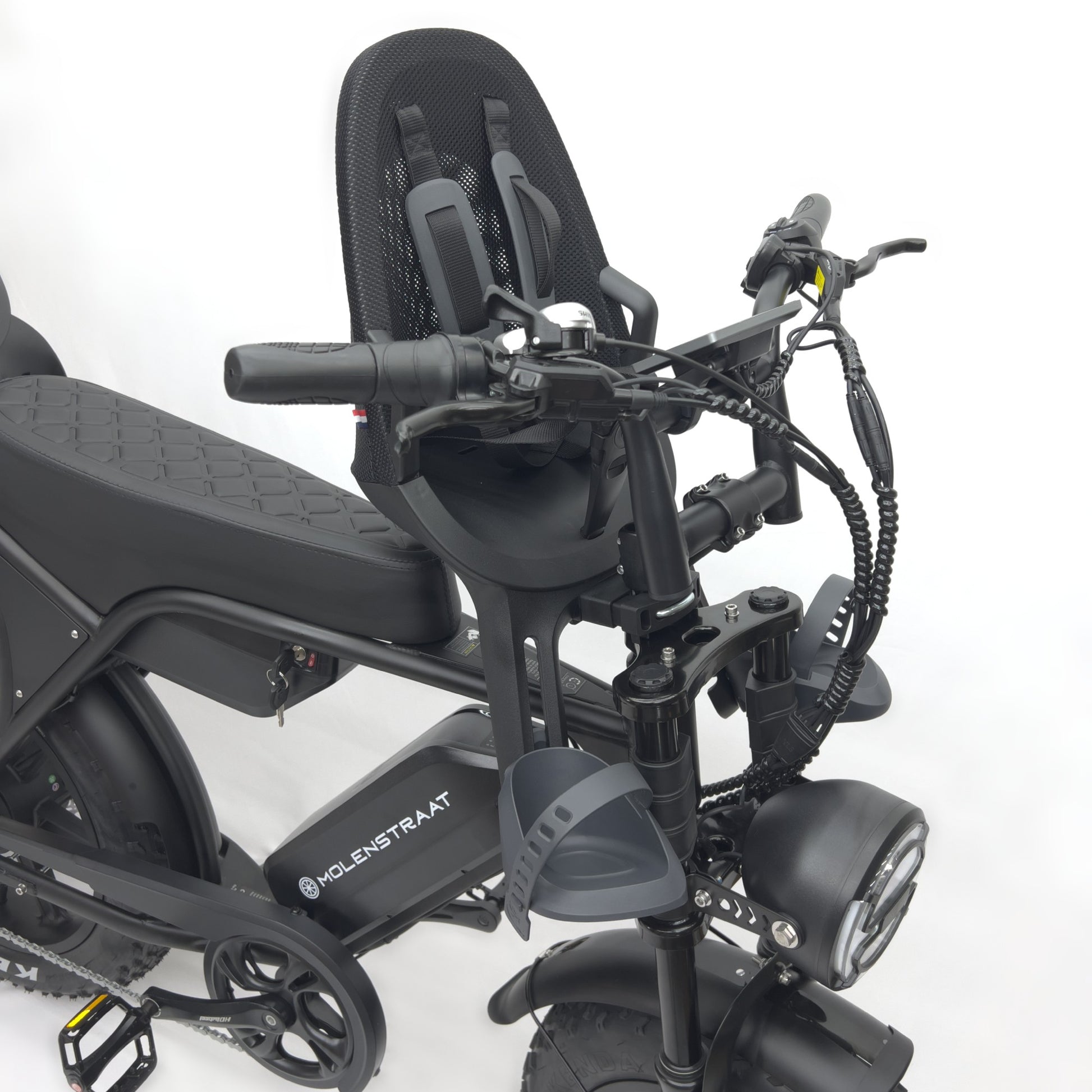 This Dapper Pro is equipped with 2 high quality Qibbel baby seats. Safe, robust and perfectly matching the Dapper style - for fun family riding without compromise. Ultra light Rear Qibbel Air seat for children of 9 months to 6 years (up to 22kg). Front Qibbel Air seat for younger children up to 3 years (up to 15kg).