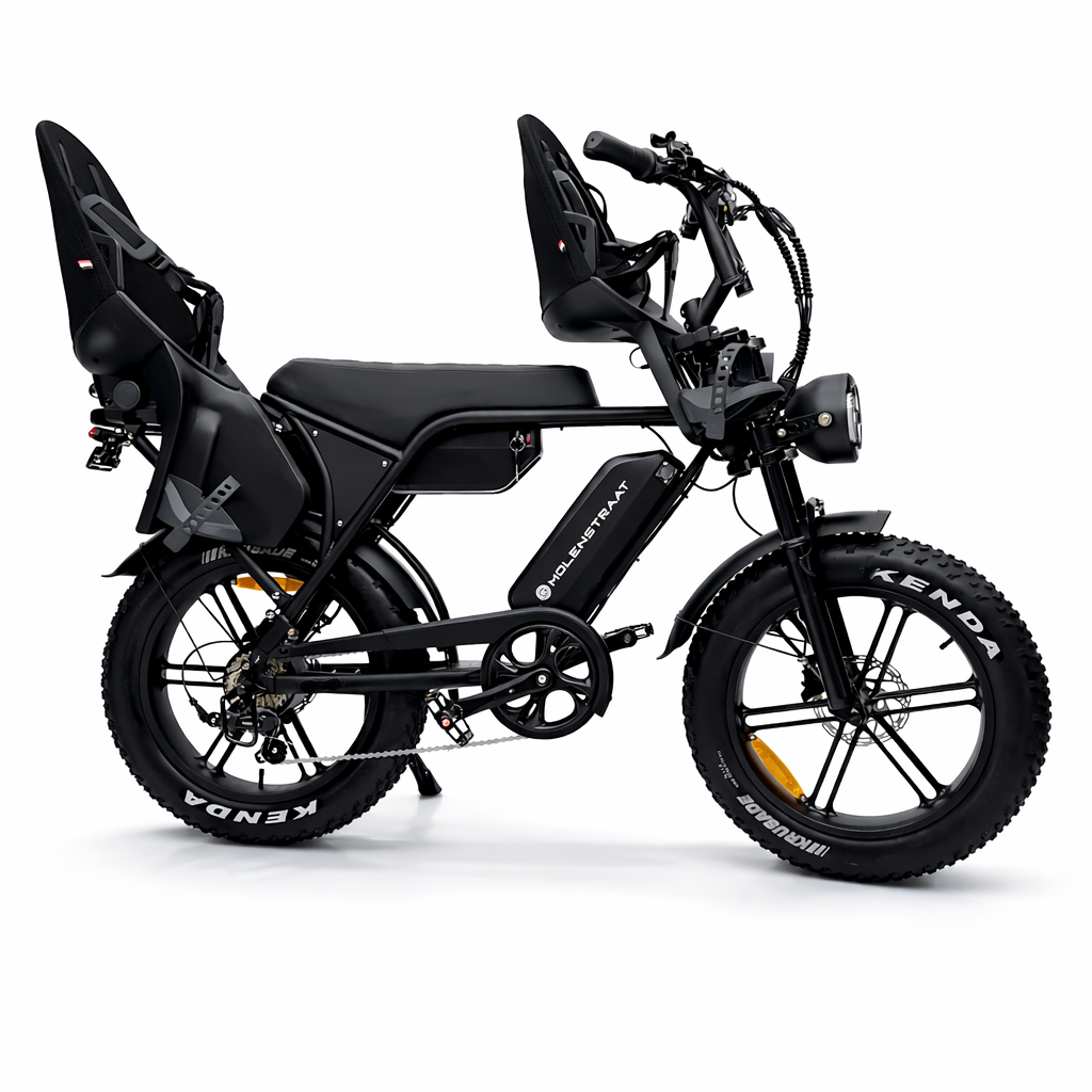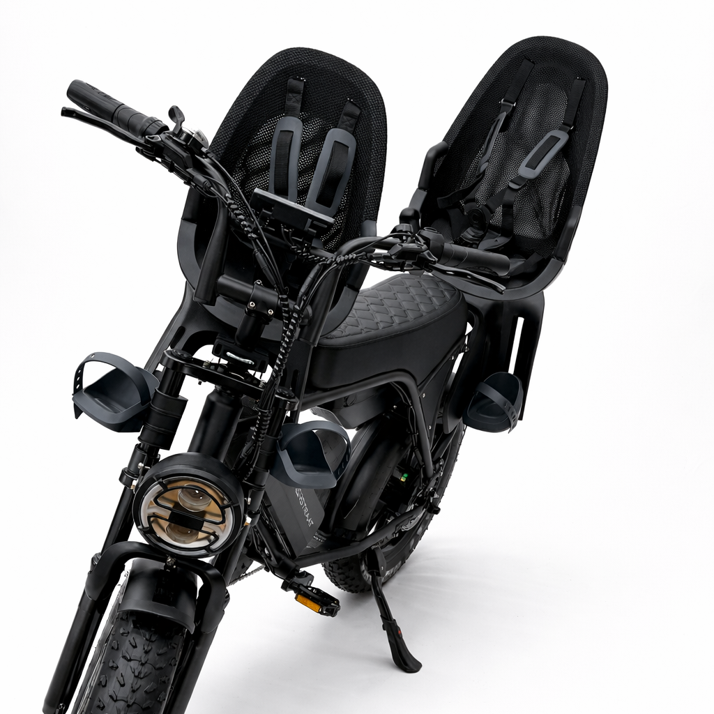 The DAPPER PRO Family-L brings premium Fatbike performance to multi-generational adventures. Built on the same robust platform as the Dapper Pro, this model accommodates two children with integrated front and rear child seats, transforming your ride into a family experience. Engineered for stability and control with distributed weight, it delivers the handling and durability Dapper Pro riders expect—now designed for parents who refuse to leave anyone behind.