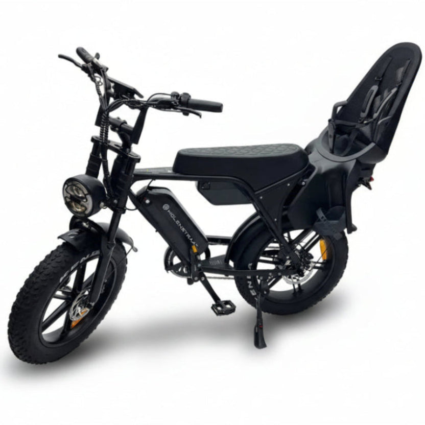 The DAPPER PRO Family-M brings premium Fatbike performance to multi-generational adventures. Built on the same robust platform as the Dapper Pro, this model accommodates a children seat on the rear passenger seat rack, transforming your ride into a family experience. Engineered for stability and control with distributed weight, it delivers the handling and durability Dapper Pro riders expect—now designed for parents who refuse to leave anyone behind.