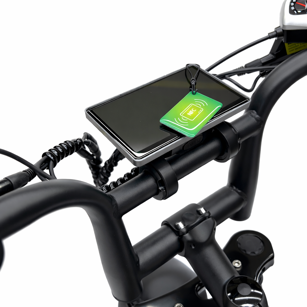 Color LCD display, speed, battery status, distances travelled, NFC key lock