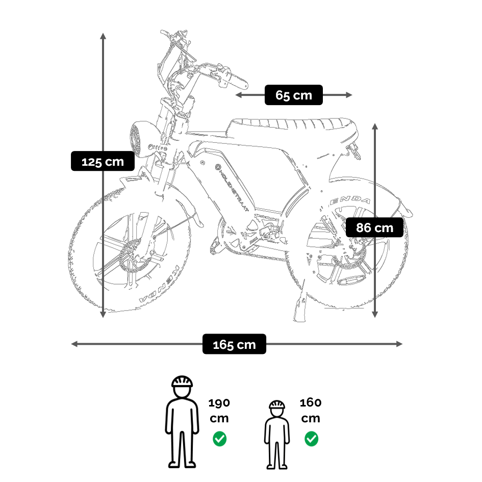 The thick 20-inch Kenda tires provide excellent grip and stability, ensuring you can move comfortably and safely – both in the city and on unpaved trails