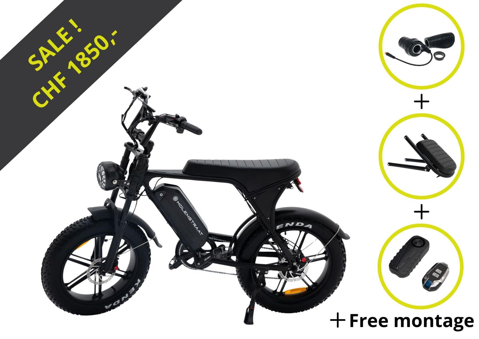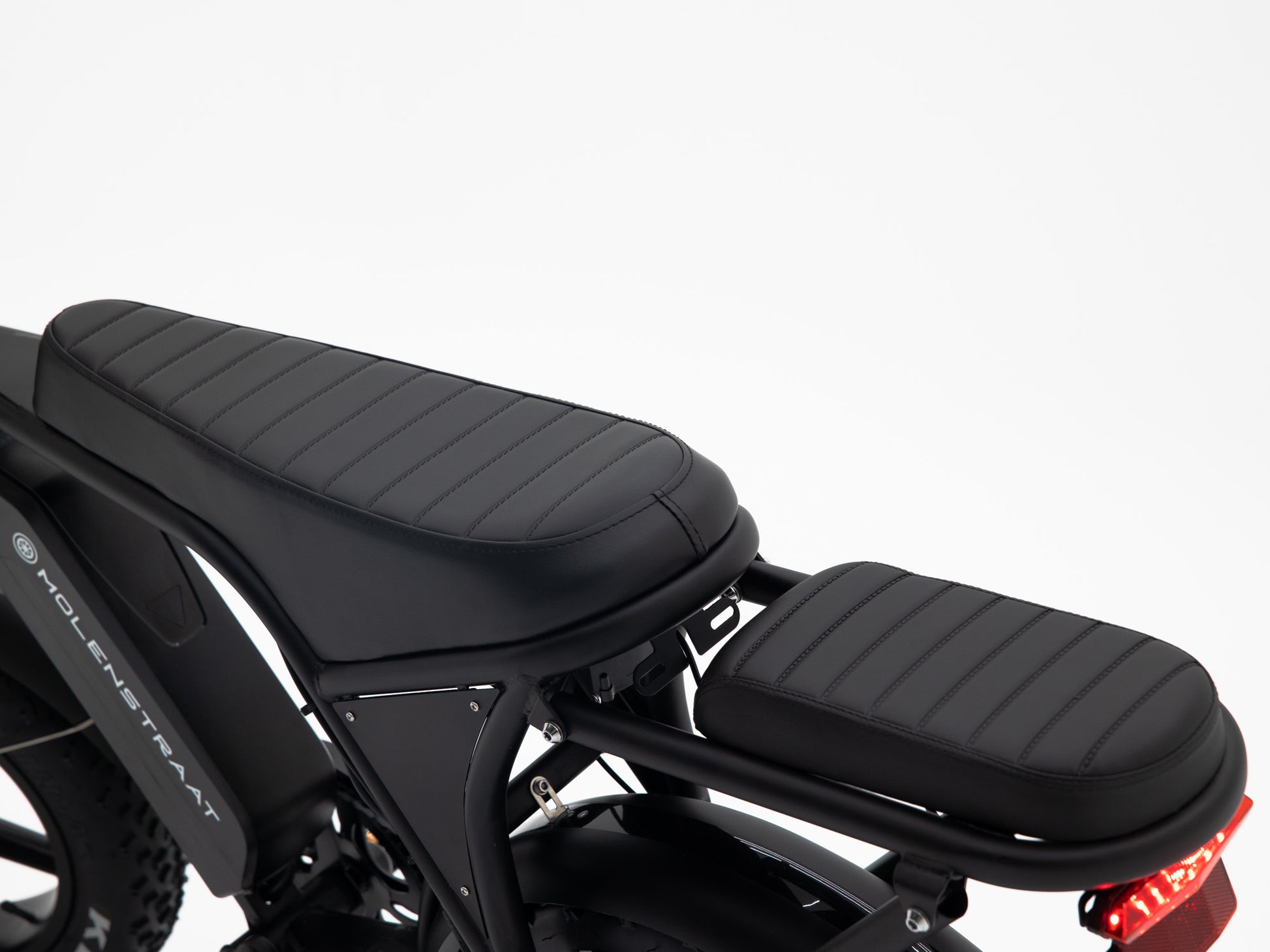 The Dapper Combo Deal combines a Dapper Fatbike with most essential accessories for a superior riding experience. Featuring a throttle handle that accelerates smoothly up to 25 km/h, it offers precise speed control for effortless riding. The included passenger seat, complete with footrests, ensures comfort and safety for your companion on every journey. Additionally, the integrated alarm kit provides reliable security to protect your investment. This expertly crafted packaged deal delivers performance, comfort, and peace of mind in one comprehensive package. Limited stock available!